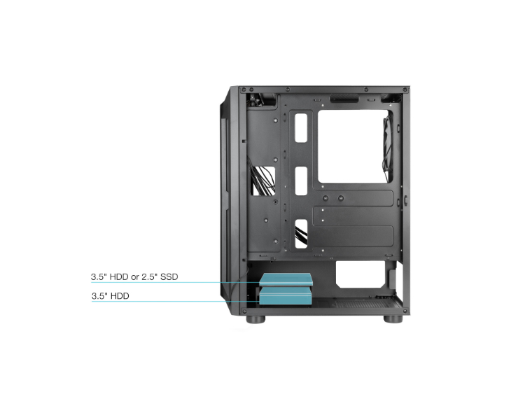 Bahías INT: 2x3'5, 3x2'5/ 1xUSB3.0, 2xUSB2.0 /Audio IN/OUT/ Iluminación RGB