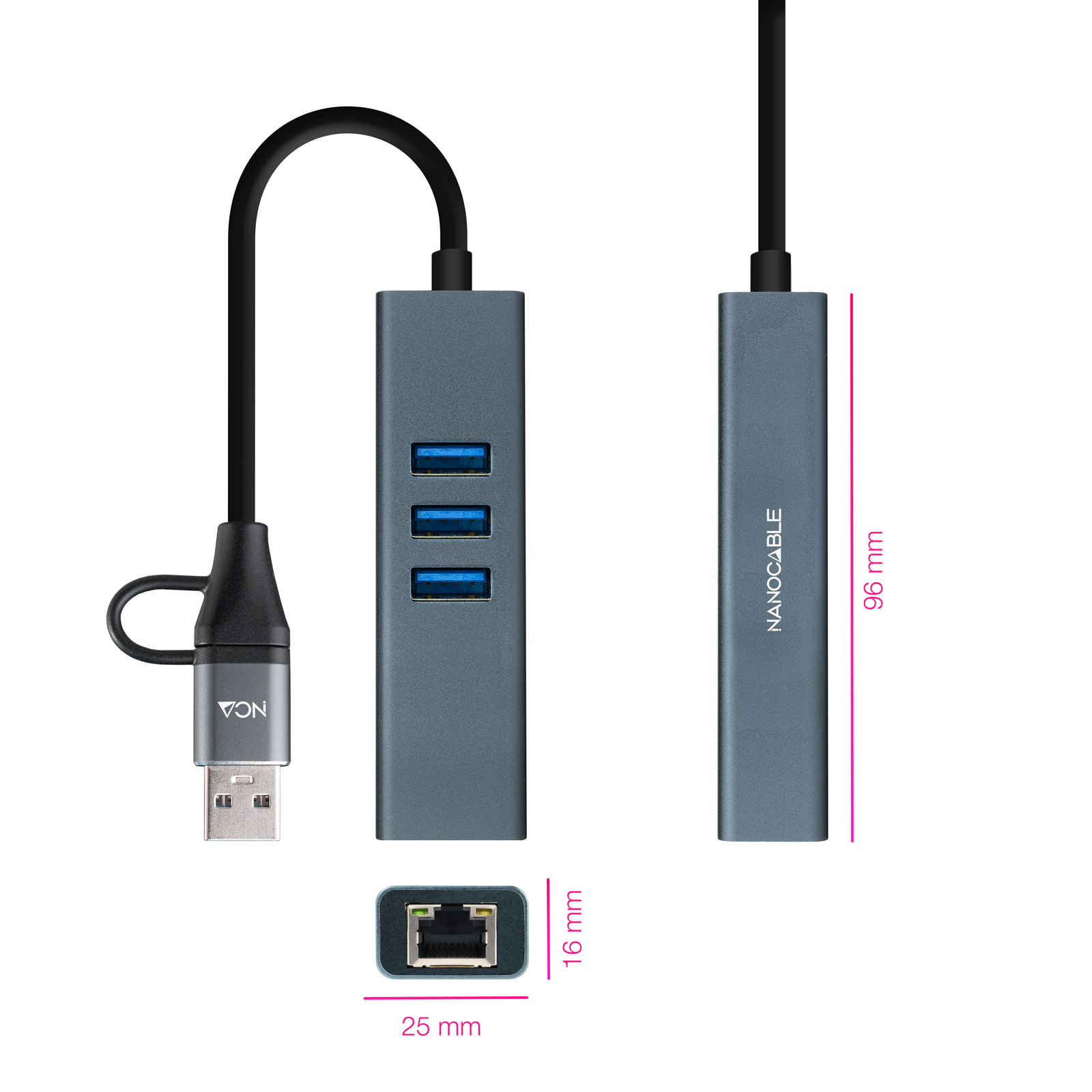 CONVERSOR USB-C+USB-A/M 3.0 A ETHERNET+ 3xUSB-A 3.0 15 CM GRIS NANOCABLE