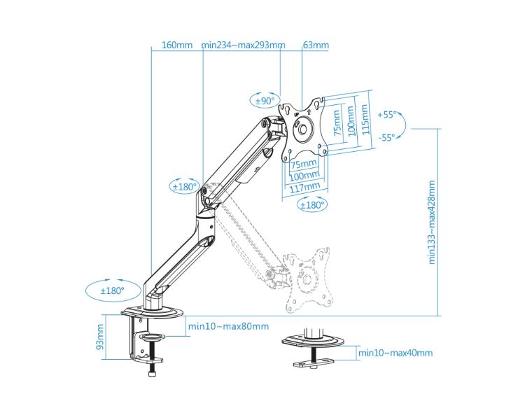 17-32"/ VESA MAX 100x100/ HASTA 9KG/ INCLINABLE/ ALTURA AJUSTABLE