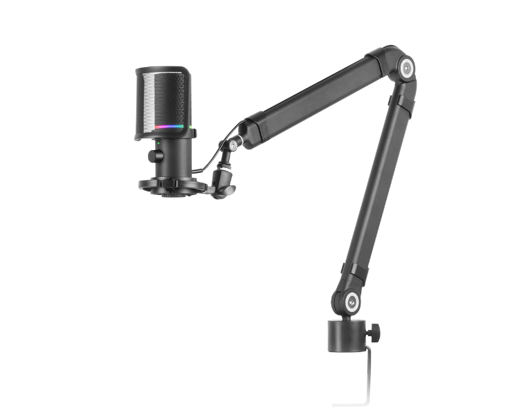 Soporte de amortiguación antivibratorio/ Filtro Pop de malla metálica/ Brazo de pluma omnidireccional/ Iluminación Dynamic ARGB Ring