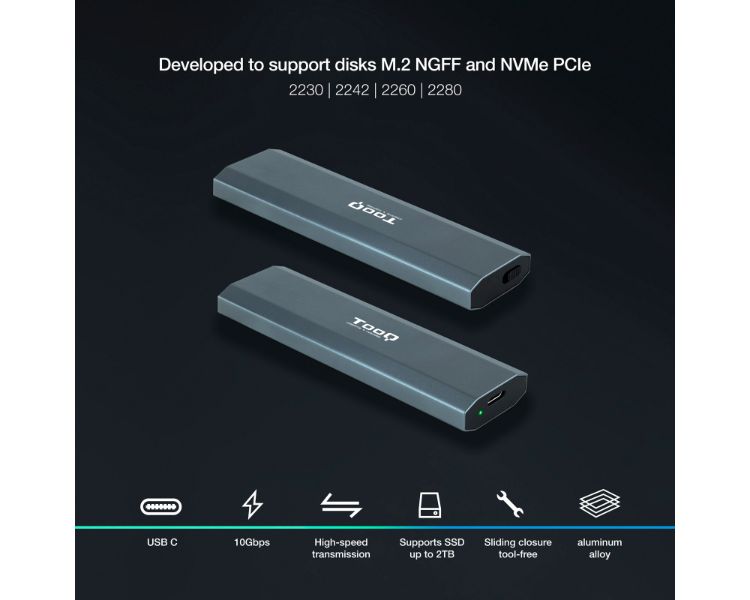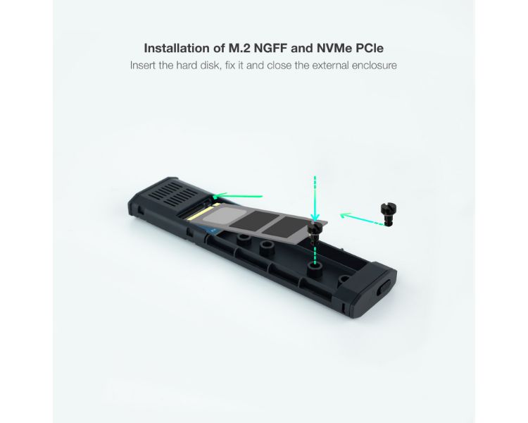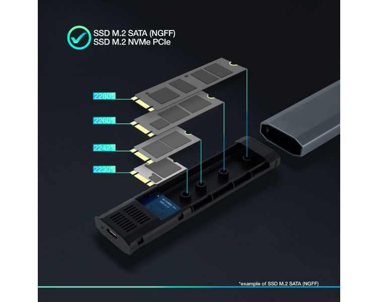 Compatible con M.2 NGFF y NVMe PCIe 2230/2242/2260/2280