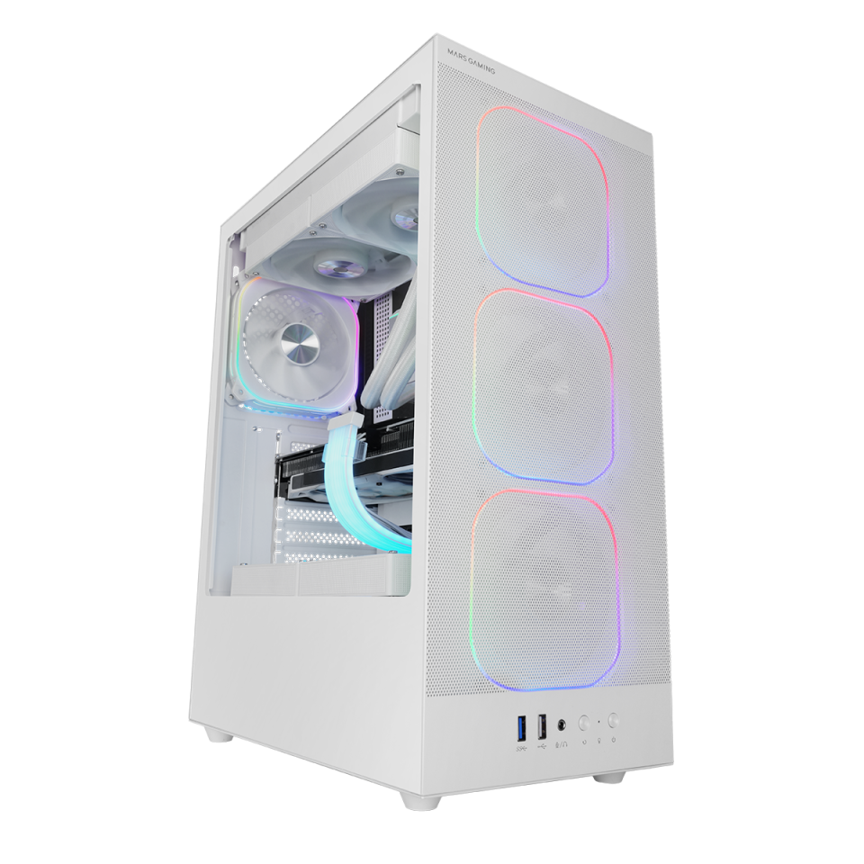 La MCN2 ofrece un amplio espacio interno para la instalación de componentes de alto rendimiento, ofreciendo soporte para placas ATX, micro-ATX y mini-ITX, hasta 3 SSDs y 2 HDDs, 4 ventiladores de 120mm y una gestión de cableado interno eficiente.