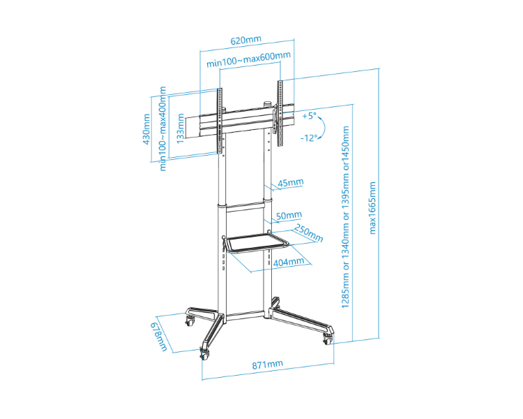 Soporte 37"-70"/ Bandeja inferior/ VESA máx. 600x400mm/ Peso soportado 50kg