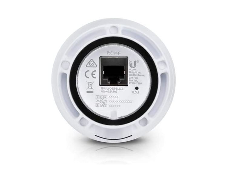 La cámara de video UniFi G4 Bullet ofrece video claro de 4MP y 24 fps a través de Gigabit Ethernet. El diseño de montaje de junta esférica permite la instalación en interiores o exteriores y ofrece un ajuste flexible de 3 ejes. La cámara tiene LED infrarrojos con un filtro de corte IR automático para vigilancia diurna y nocturna. Cuenta con un micrófono incorporado y admite 802.3af PoE para potencia.